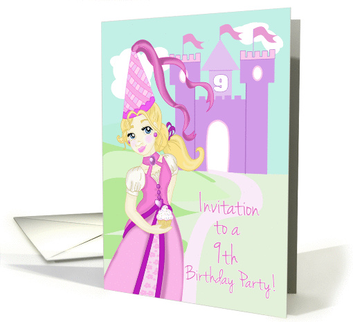 9th Birthday Party Invite-Princess and Cupcake-Pink