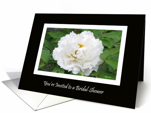 This lovely white peony on black design is available in my store in categories to meet all your wedding needs. I have invitation & thank you cards for wedding party, bridesmaid, jr. bridesmaid, flower girl, hostess, maid & matron of honor, thanks mom & dad, bridal shower invitations & thank yous.