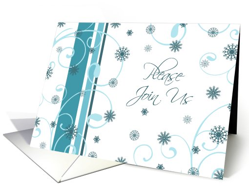 Christmas Party Invitation Card - White Turquoise Snowflakes