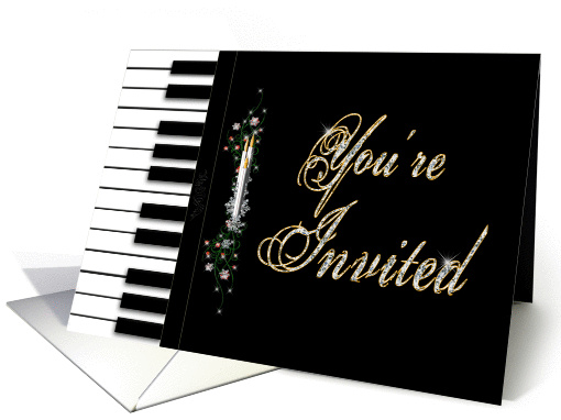 Christmas Party Invitation - Piano - Candles - Keyboard - Musicians - You'Re Invited