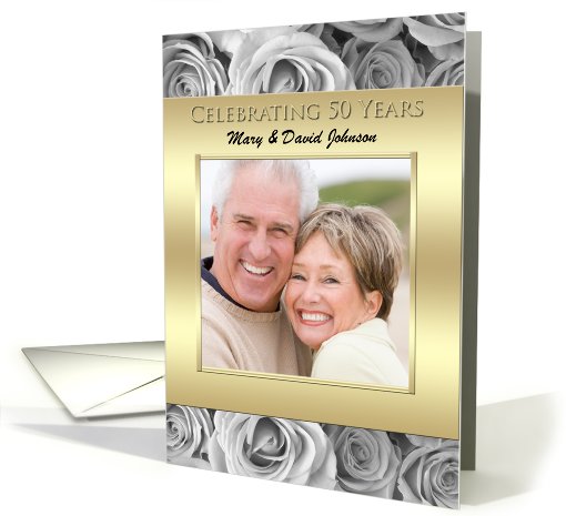 50th Golden Wedding Anniversary Photo Invitations -- Roses with Gold