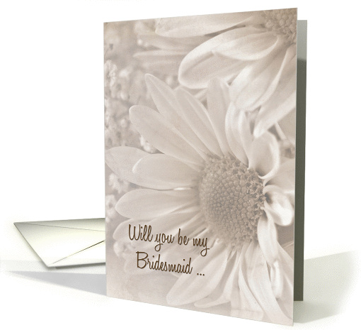 Bridesmaid request with soft sepia daisy bouquet