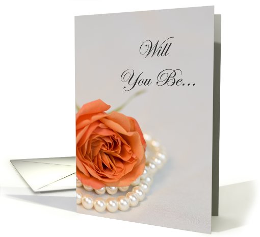 Elegant Orange Rose and Pearls Will You Be My Bridesmaid Invitation Card