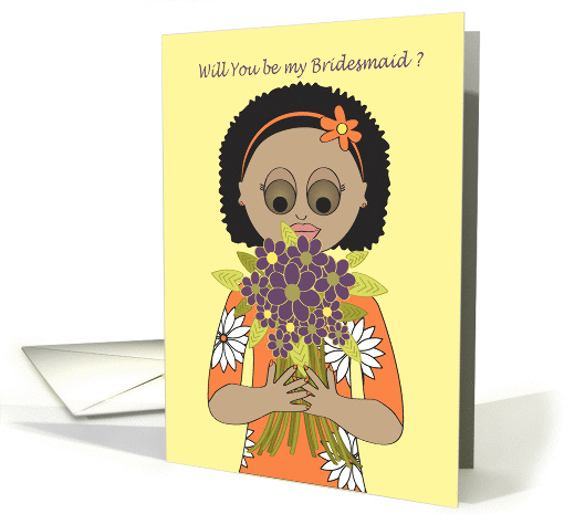 A Be my Bridesmaid card for a Special Friend. This card shows a girl holding a bunch of Flowers, with a 'Will you be my Bridesmaid?' Message.