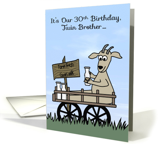 30th Birthday to Twin Brother Humor with a Goat in Cart Selling Milk