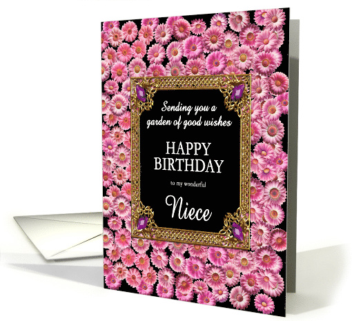 A floral birthday card for your niece. This elegant birthday card showcases a delicate scattering of soft pink daisies, symbolizing beauty, grace, and joy. The light and airy floral design brings a touch of nature’s charm, perfect for celebrating a special day with warmth and love. The cheerful flowers evoke feelings of happiness and renewal, making it an ideal choice for sending heartfelt birthday wishes.