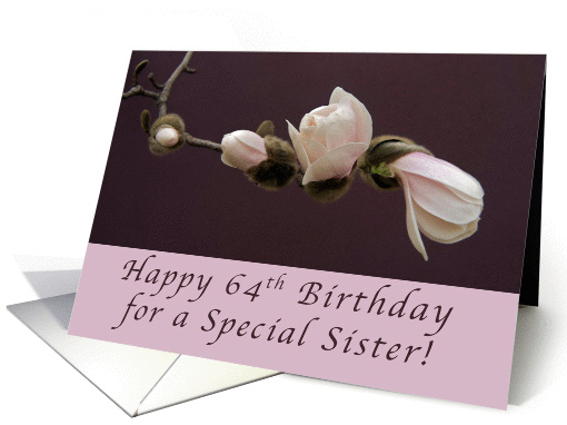 A beautiful magnolia branch with blossoms in four stages of opening make for a delicate and classy image for this birthday card. This is a card your sister should enjoy receiving from you.