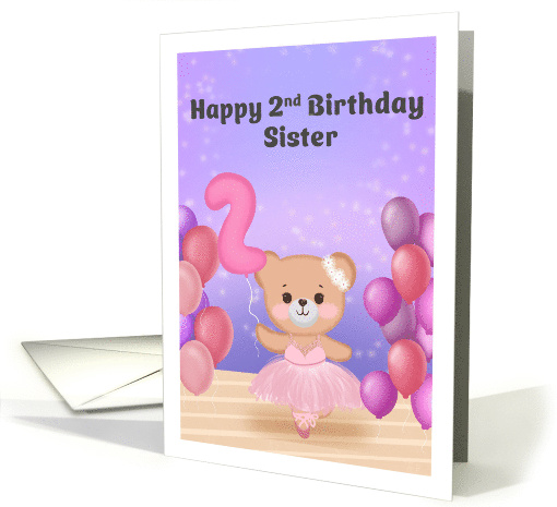 Celebrate your sister’s 2nd birthday in style with this adorable teddy bear ballerina, twirling on stage and holding a sparkling “2” balloon a perfect keepsake and gift for little ones!