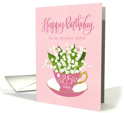 Sister 85th Birthday Pink Teacup with Lily of the Valley Flower