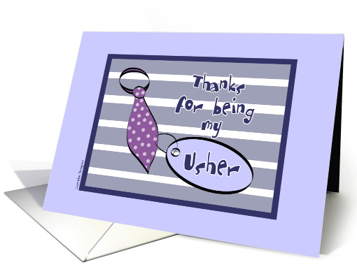 Thanks for being my usher card in blue and purple with stripes and polka dot men's tie.