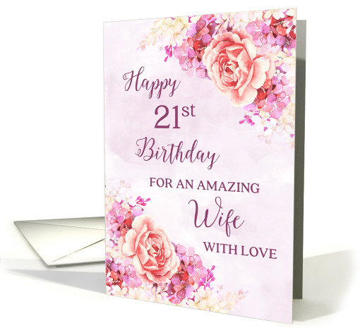 Wish your wife a fabulous day on her 21st birthday with this wonderful pink and purple floral greeting card.